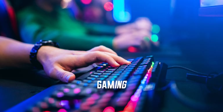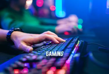 Componentes gamer y productos de computación con estilo moderno y urbano.